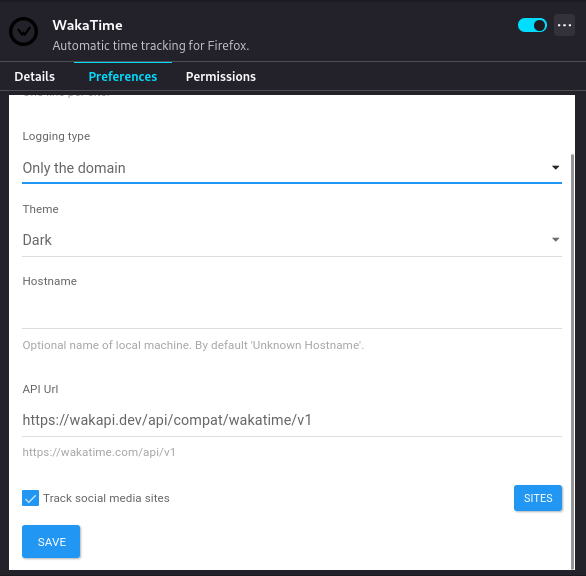 Wakapi also integrates with GitHub Readme Stats to generate fancy cards for you. Here is an example. To use this, don't forget to enable public data under Settings -> Permissions.